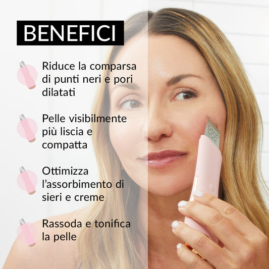 Esfoliazione di livello clinico con aspirazione vacuum per ritrovare una pelle fresca e radiosa.